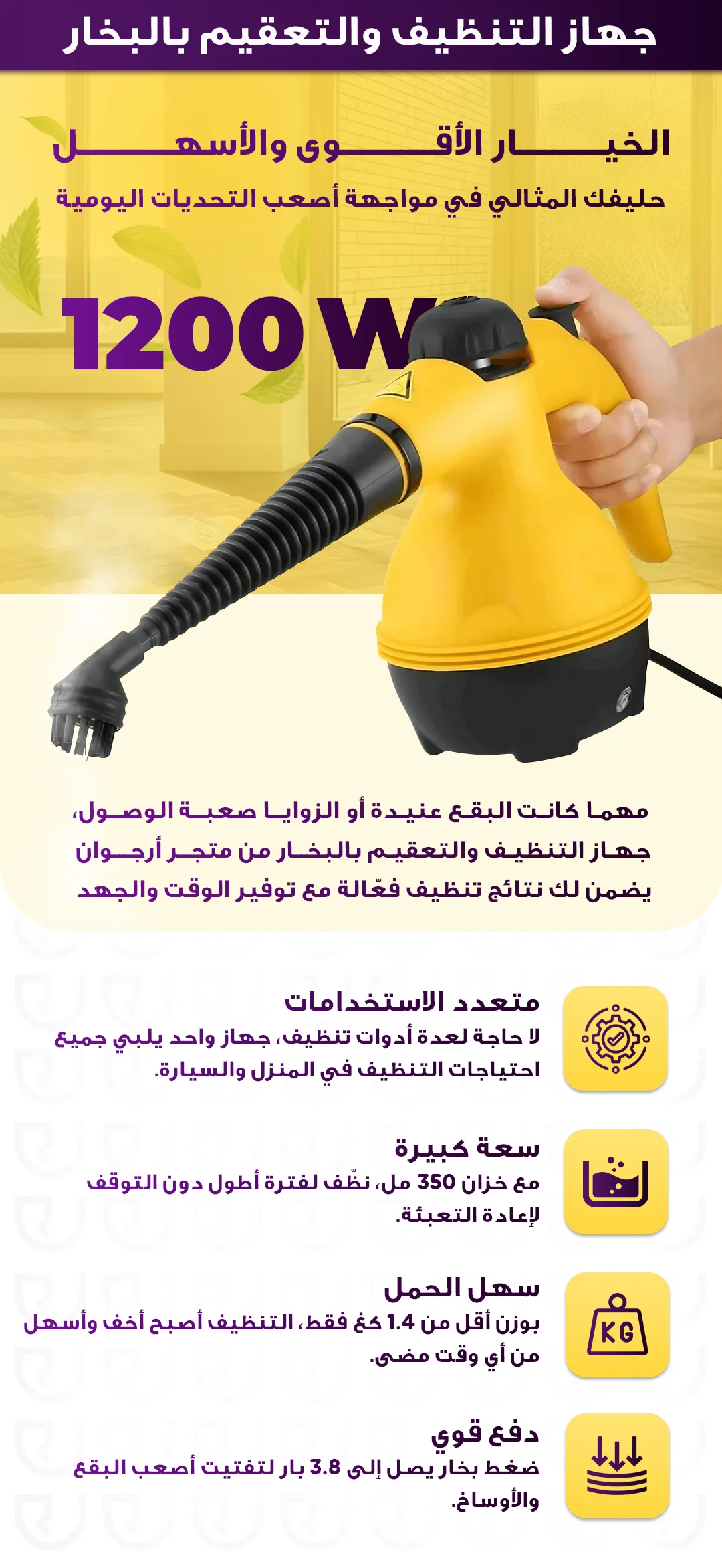 منظف بخار كهربائي Denx بضمان عامين